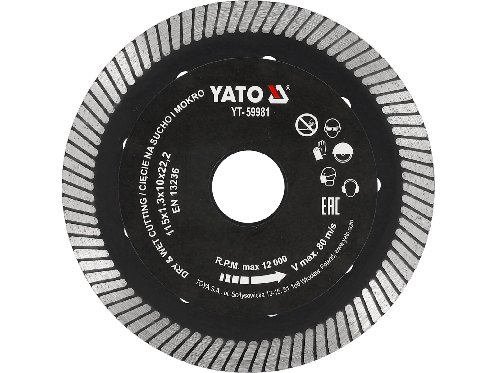 - RPM max: 12000 min⁻¹