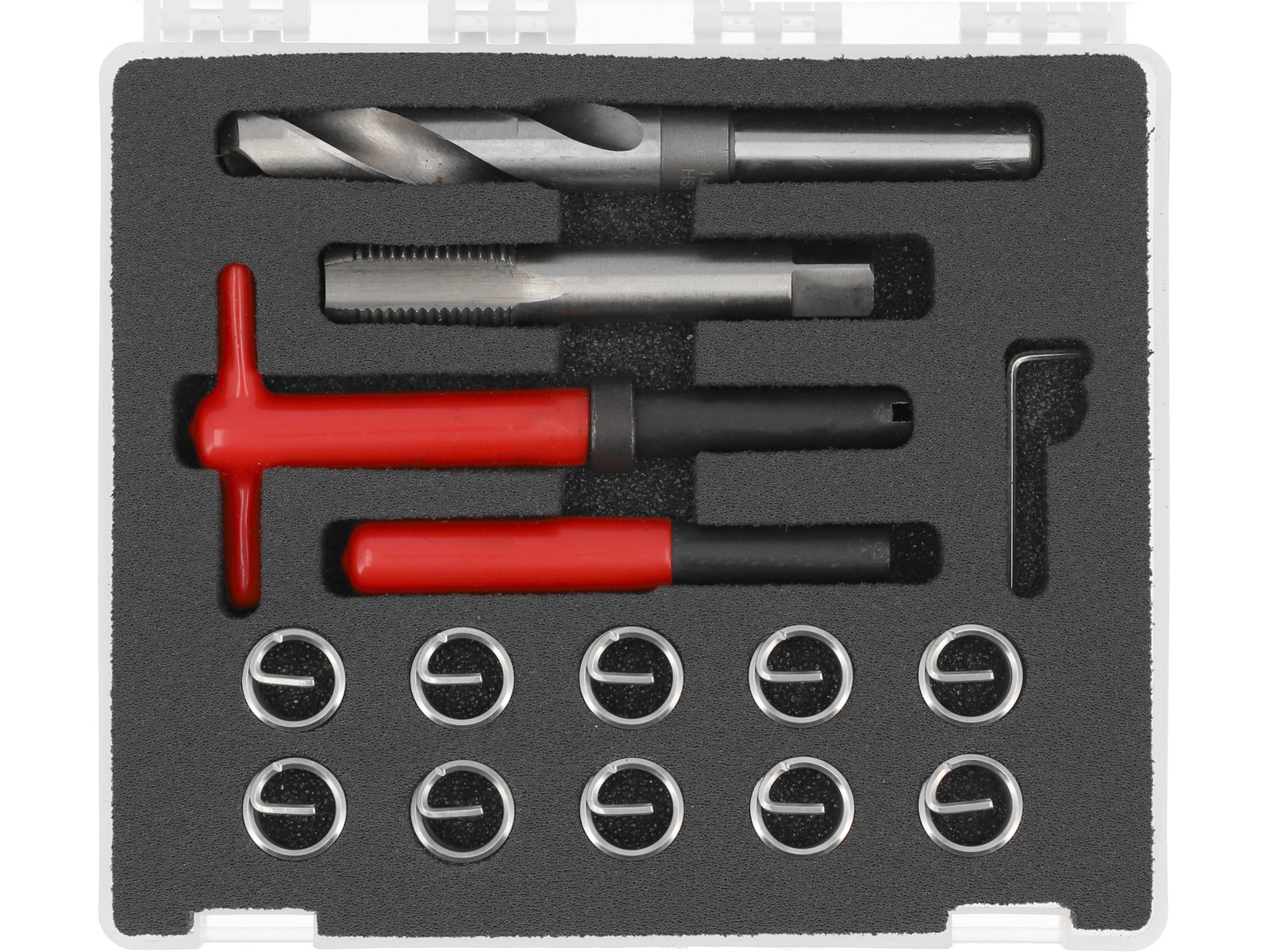 - Setați conținutul: atingeți într-o singură etapă pentru a crea un fir pentru o nouă inserție|insert spiralat x10 (M16x2.0)|buton pentru înșurubarea inserțiilor spiralate|atacant|burghiu pentru îndepărtarea filetelor deteriorate|