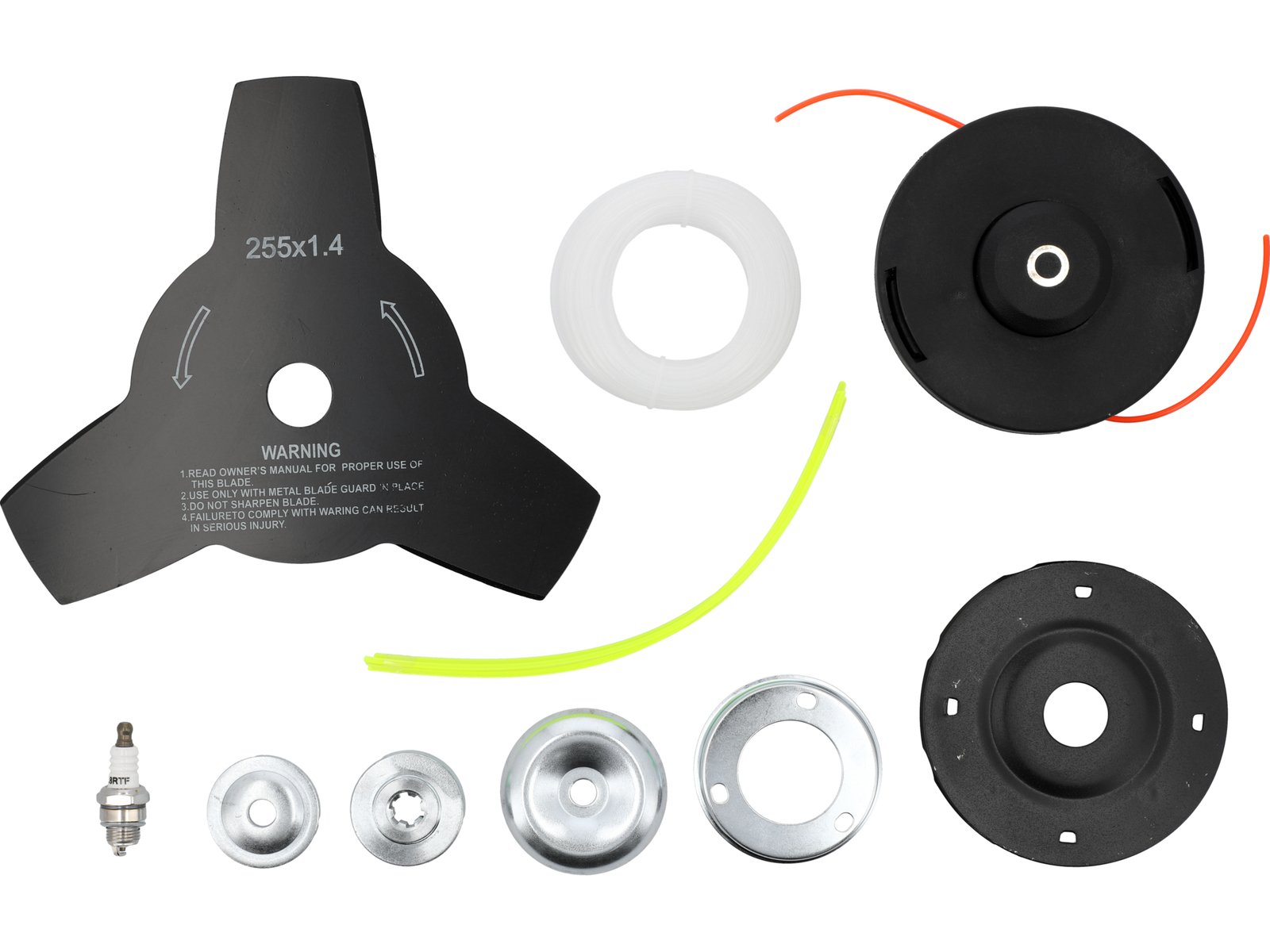 - Setați conținutul: coasă|Nylon cap venă x2|cap de venă metalic|lamă trident|linie|bujie x2|rezervor de amestec combustibil|lamă pentru protecția coasei|set de instrumente|ham dublu
