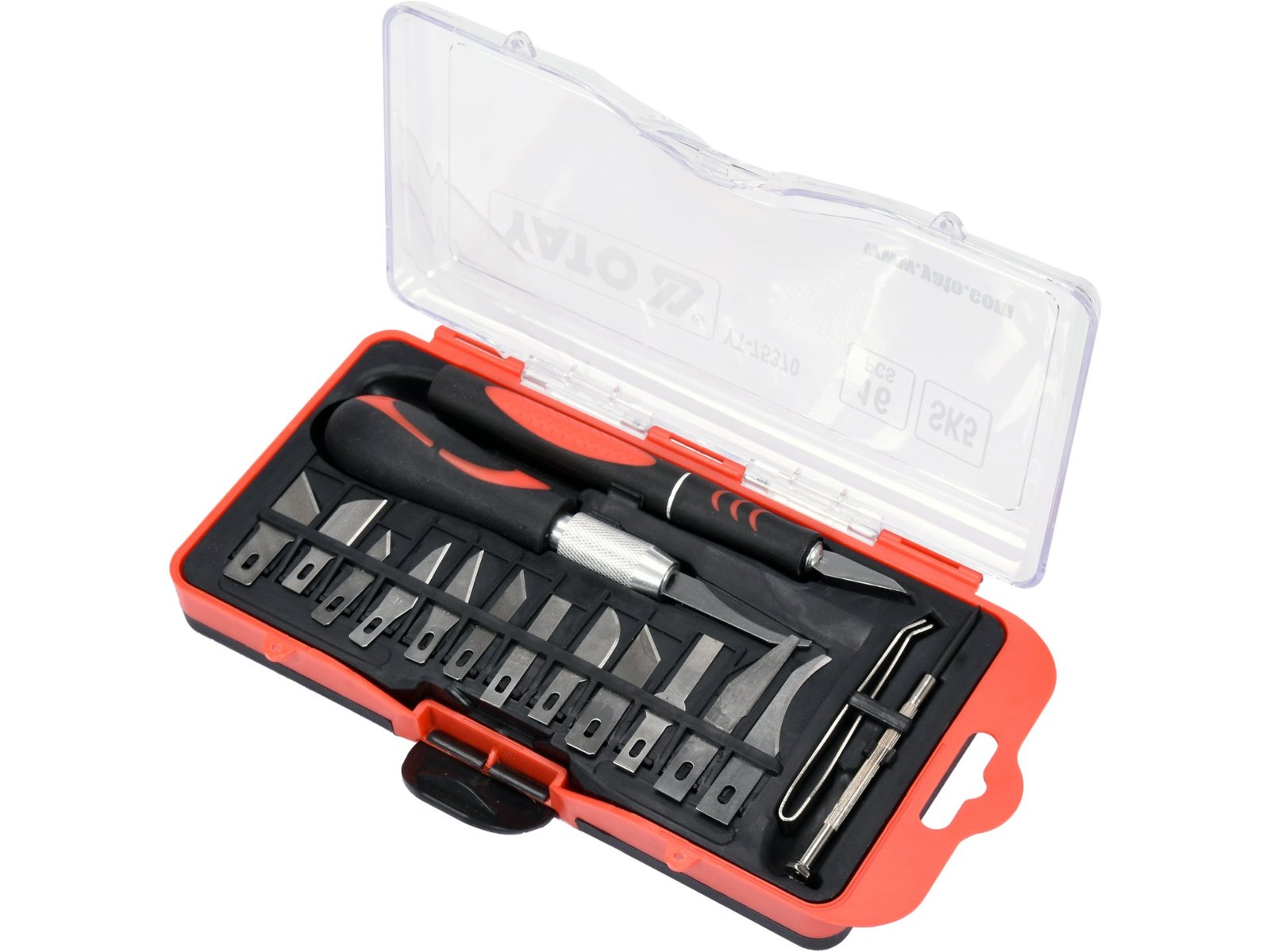 - Setați conținutul: lama x12|maner cu lame x2|pensetă|șurubelniță de precizie