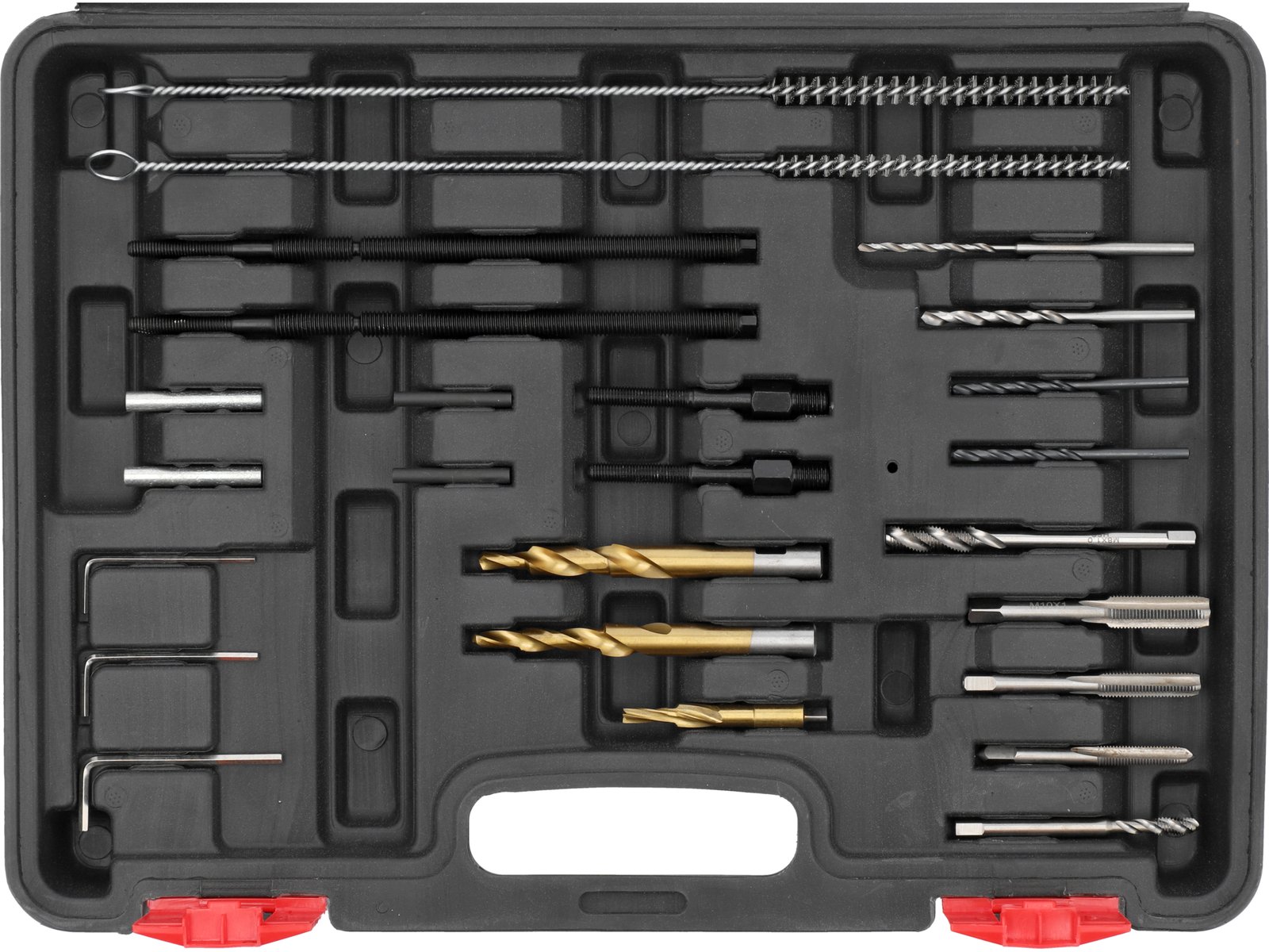 - Conținutul setului cont.: știft pentru adaptor extractor x4|robinet x4 (1/4 UNF12-28, M8x1, M8x1 spirală, M10x1)|perie pentru curatarea camerei bujiilor incandescente x2|